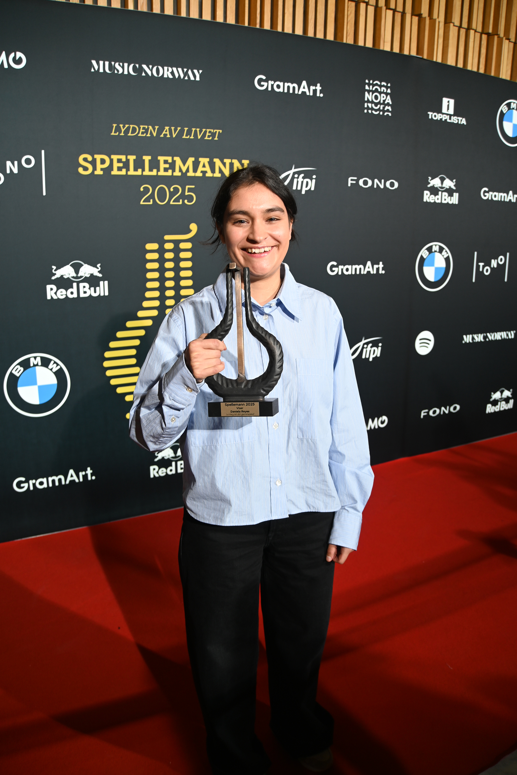Daniela Reyes fra Asker vant kategorien for viser under Spellemann-utdelingen for 2025 i kveld i Operaen i Oslo for «La meg bli ditt gjemmested». Den dyktige artisten spiller både trekkspill og gitar.